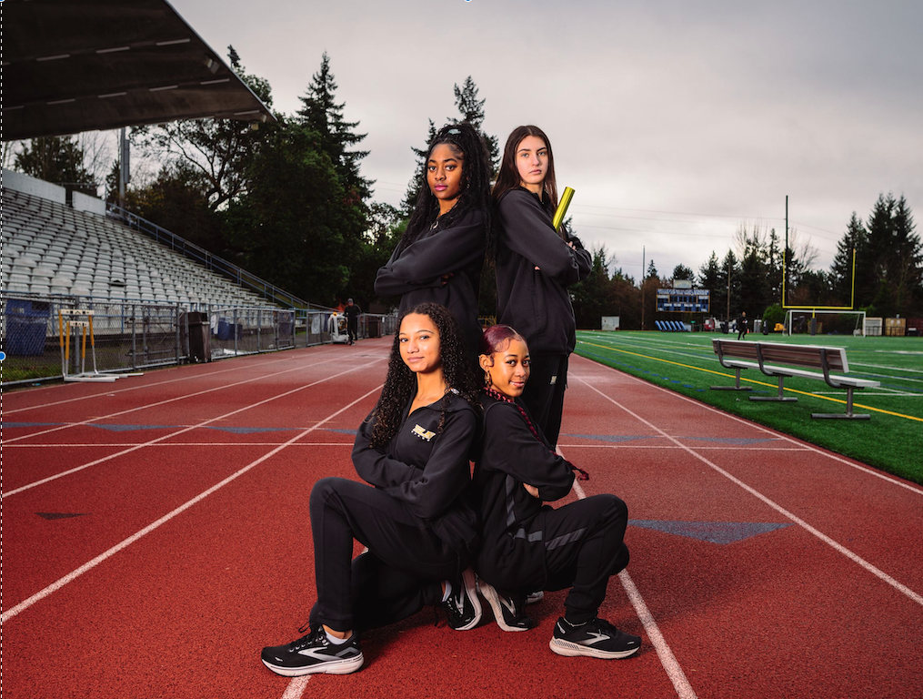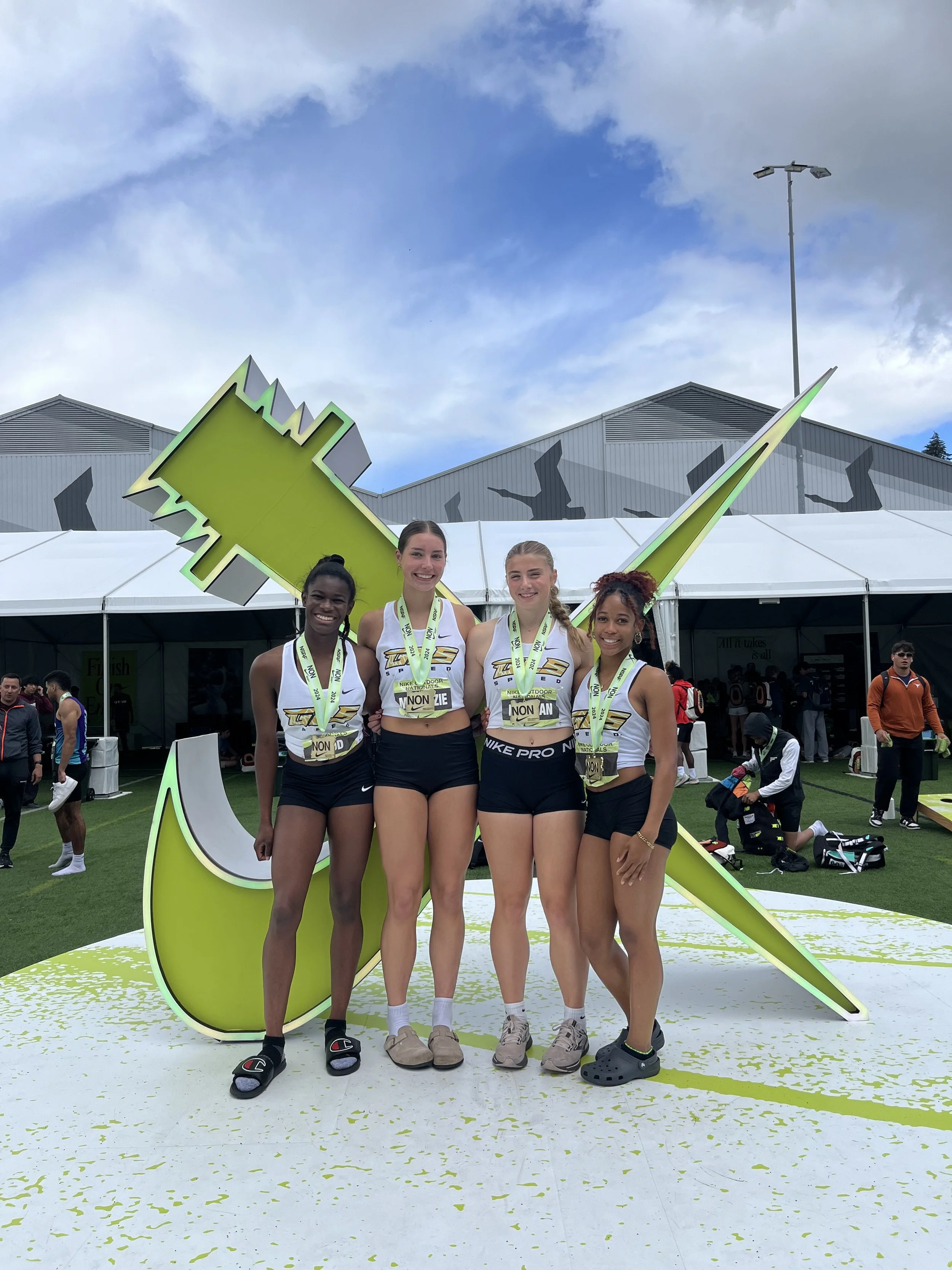 4x100mR: Naly Khamlue-Pratt, Laine McKenzie, Riley Crandall, Journey Cole 45.58 (2025)
